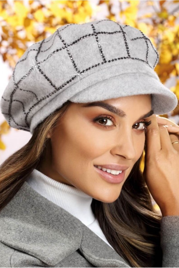 Caciula de dama tip bereta cu cozoroc WL11235 se evidentiaza datorita aplicatiei bogate de strasuri asortate care stralucesc discret in razele de lumina. Cozorocul incadreaza placut trasaturile faciale. Piesa este versatila si asigura stare de bine in timpul purtarii. Este accesoriul care atrage admiratia celor din jur, creste increderea in sine si ofera confort termic in zilele racoroase de toamna-iarna.