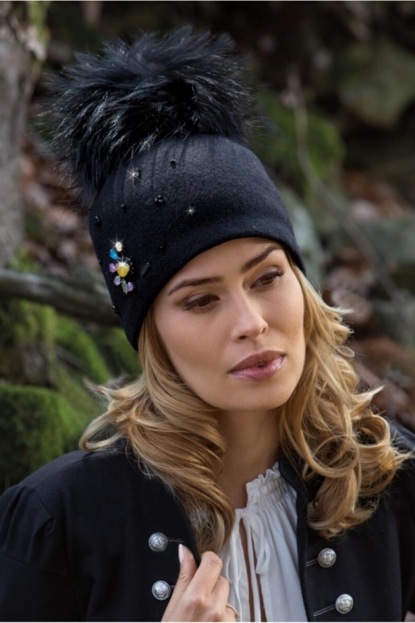 Caciula de dama cu pompon din blanita WL10722 este un accesoriu care ofera un aer tineresc, original, tinutei pe care o completeaza. Confortabila, moderna, intriganta, astfel poate fi descrisa caciula care impresioneaza prin calitate exceptionala si accesorizare inedita. De la prima atingere se remarca fibrele de lana de foarte buna calitate utilizate. Acestea provin in totalitate de la oile din rasa merinos si au certificare Woolmark, ce atesta caracteristicile deosebite. Tricotul este lucrat fin, astfel ca se simte moale si catifelat la atingere. Caciula este captusita cu polar (fleece) ce asigura confort termic sporit impotriva intemperiilor. Caciula de dama cu pompon din blanita WL10722 se bucura de o accesorizare aparte. Croiala simpla, ce ia forma capului, este echilibrata de strasurile multicolore si mici margele inteligent montate in partea laterala. Originalitatea piesei si aspectul premium sunt oferite de pomponul supradimensionat aplicat in varf. Acesta este realizat din blanita naturala si se poate detasa, usurand astfel curatarea caciulii. Designul modern transforma caciula WL10722 in piesa de rezistenta pentru vestimentatiile tineresti cu personalitate sau pentru tinutele casual indraznete.