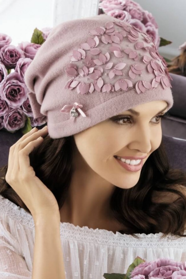 Accesorizarea sofisticata cu numeroase frunze stilizate din material satinat face ca acest modelul sa iasa in evidenta in orice context. Frunzele satinate, dispuse artistic pe suprafata caciulii, creeaza un joc de lumini si umbre, care atrage privirea si confera o nota de mister. La spate, caciula de dama WL10848 prezinta cateva pliuri decorative, ce sunt stranse sub o fundita stilizata din tricot. Aceste detalii adauga un plus de farmec, facand ca modelul sa fie usor de asortat cu diverse tinute.