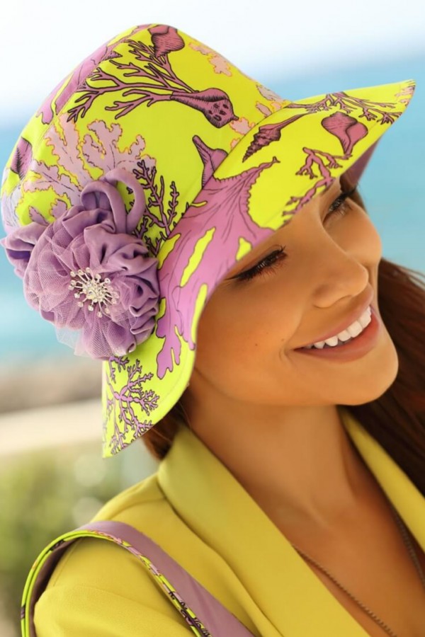 Palarie dama vara WL11182 – realizata manual din materiale naturale, lejere care permit pielii sa respire. Cu aceeasi precizie si vigilenta rezultata din multi ani de experienta este realizata manual si intreaga accesorizare a piesei. La interior este captusita cu bumbac certificat OEKO-TEX®. Modelul are culori vibrate si impresioneaza prin decorul floral completat cu brosa fermecatoare si strasuri asortate.
