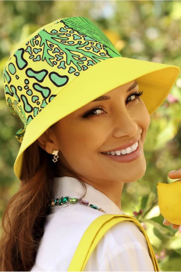 Palarie dama vara WL11185 – un model potrivit vacantelor exotice datorita nuantei vibrante de galben combinata cu panglica cu detalii verzi. La spate prezinta o fundita decorativa chic. Este cusuta si finisata manual din materiale usoare care permit pielii sa respire, pastrand sentimentul placut de prospetime si lejeritate. Tesatura din vascoza de calitate superioara in combinatie cu bumbac este foarte placuta la purtare si asigura confortul termic.