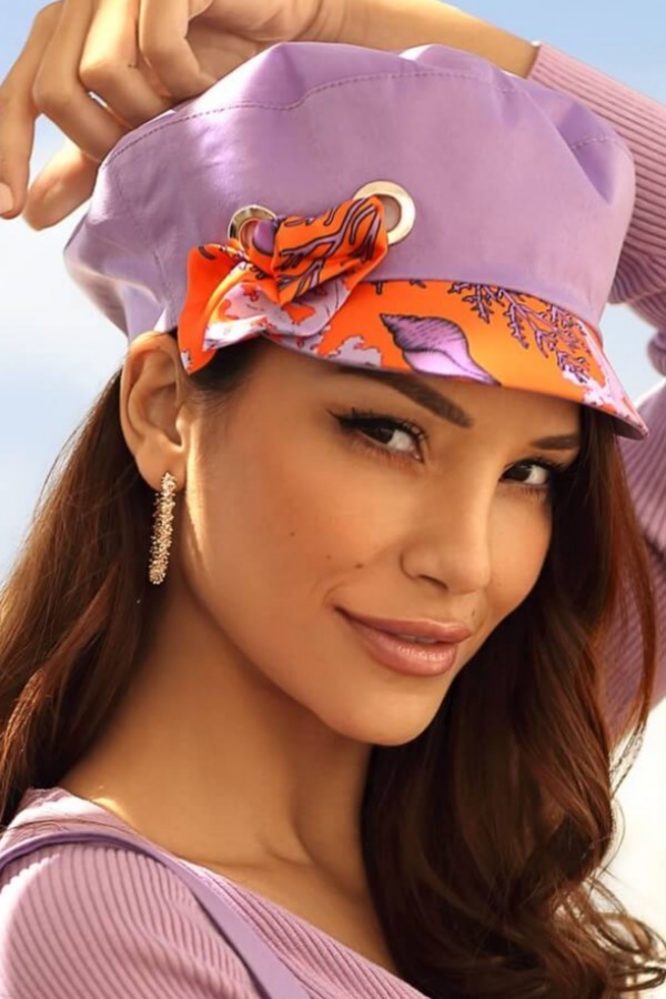 Sapca dama de vara WL11198 – are croi clasic inspirat din sepcile marinaresti. Este accesorizata in lateral cu un decor din material satinat, iar cozorocul este finisat in culori contrastante. Pe langa aspectul estetic, cozorocul are si rolul de a proteja tenul de razele directe ale soarelui. Modelul este captusit cu bumbac certificat OEKO-TEX®.
