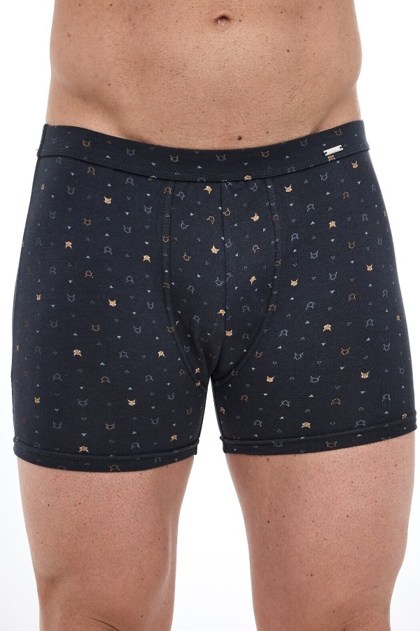 Boxeri pentru barbati din gama "Prime" realizati din bumbac de inalta calitate si adaos de fibre elastice. Boxerii prezinta model deosebit cu capete de vulpi. Talia elastica si cusaturile plate ofera confort la purtare si libertate de miscare.