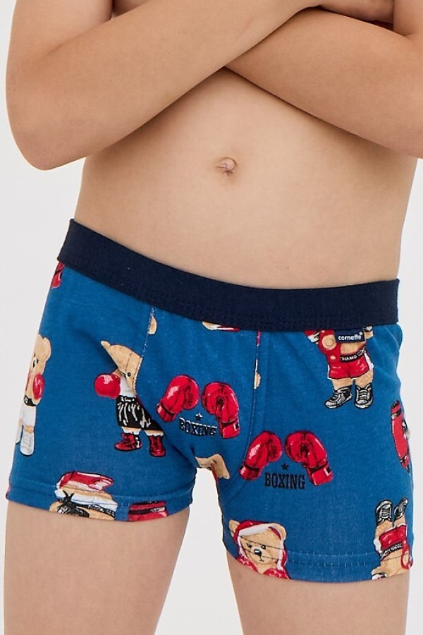 Boxeri pentru baieti realizati din bumbac de inalta calitate cu adaos de fibre elastice. Boxerii au talie elastica confortabila in nuanta contrastanta, cusaturi plate si prezinta model amuzant cu un ursulet de plus boxer.