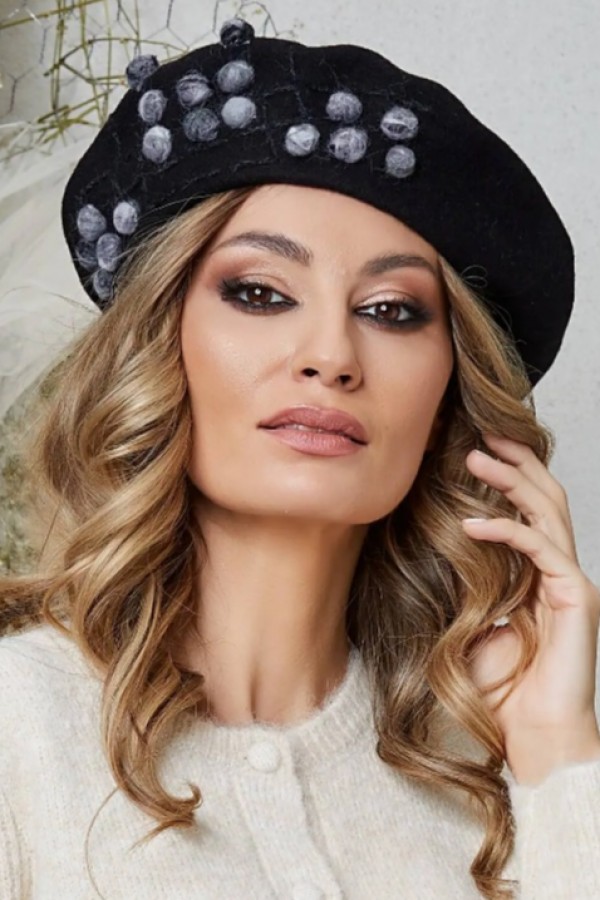 Bereta de dama Abrina combina eleganta atemporala cu functionalitatea, fiind expresia perfecta a rafinamentului si a stilului distinctiv. Inspirata de atmosfera strazilor pariziene, evoca amintiri ale unor destinatii europene unde moda si eleganta sunt la ele acasa. Cu o nuanta profunda de negru, bereta de dama Abrina ofera versatilitate si usurinta in asortare. Croiala sa clasica, alaturi de nasturii stilizati imbracati in fire de lana, plasati strategic in partea dreapta, adauga un plus de rafinament si unicitate piesei. Acesti nasturi, alaturi de cusaturile decorative discrete, subliniaza maestria si atentia la detalii cu care a fost realizata.