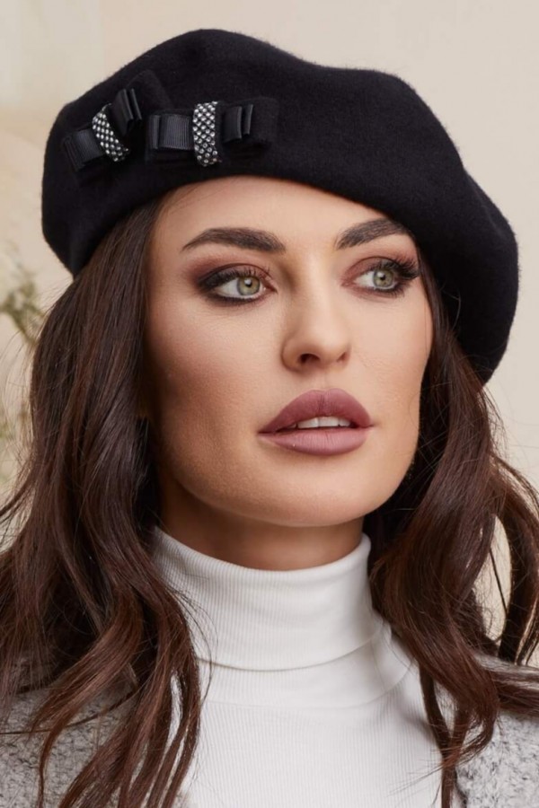 Designul este minimalist, insa nu lipsesc detaliile care ii ofera un aer sofisticat. Doua fundite stilizate, completate cu strasuri discrete, stralucesc subtil in lumina, adaugand astfel un plus de eleganta. Bereta se potriveste perfect cu o multitudine de tinute, fie ele clasice sau casual, oferind astfel versatilitate si adaptabilitate la nevoile tale. Croiul este clasic, incadrand perfect fata si accentuand frumusetea naturala a purtatoarei. Este potrivita pentru a fi purtata de catre femeile de orice varsta, adaugand un plus de stil tinutelor.