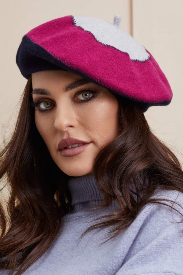 Bereta de dama Luna se remarca prin asocierea a trei culori: gri, fucsia si bleumarin, care sunt armonios unite de mici cusaturi decorative. Aceste culori complementare se potrivesc perfect cu tinutele casual, dar si cu cele mai elegante. Bereta de dama Luna este un accesoriu vestimentar care nu isi pierde niciodata farmecul si poate fi purtat de femeile de orice varsta.