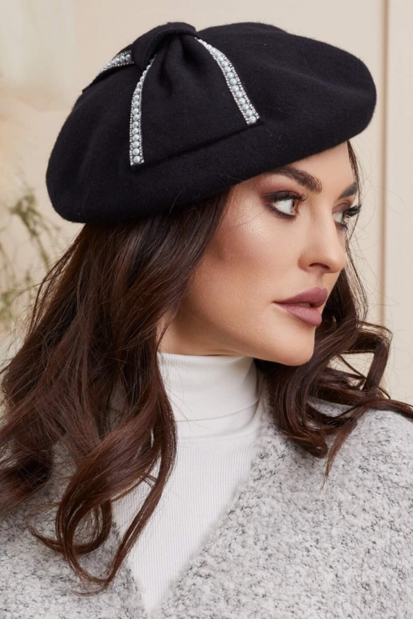 Bereta de dama Yasmina este un must-have al garderobei pentru orice femeie care isi doreste sa isi completeze tinutele cu un accesoriu chic si sofisticat. Cu un design clasic, este extrem de versatila si se potriveste perfect atat cu o tinuta casual, cat si cu una mai eleganta. Unul dintre elementele deosebite este accesorizarea care ii confera un aer elegant. Fundita mare, cu strasuri si perle, adauga un plus de stil, facand-o un accesoriu deosebit.