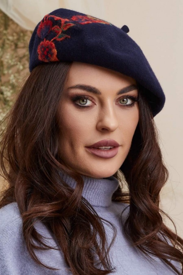 Bereta de dama Zoe este unul dintre cele mai apreciate si elegante accesorii vestimentare. Piesa este realizata manual si poate fi purtata cu usurinta in sezonul rece. Materialul asigura protectie impotriva frigului si iti permite sa te bucuri de confort termic in timpul sezonului rece de toamna-iarna. In lateral este accesorizata cu aplicatii florale ce cuceresc prin culorile sale contrastante, conferindu-i un aer romantic si delicat.
