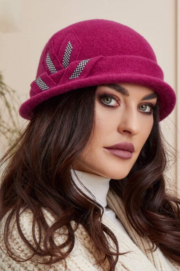 Designul este unul modern, cu un aspect care permite realizarea unor tinute sofisticate cu note clasice. Caciula de dama stil palarie Aida 2 se evidentiaza prin elementele decorative accesorizate cu strasuri stralucitoare, care ii confera un aer feminin. Trecerea de la calota la bor este evidentiata printr-un pliu care completeaza armonios designul general. Este foarte confortabila la purtat si iti ofera o senzatie placuta de caldura, indiferent de temperaturile de afara.