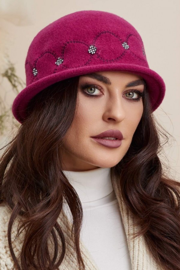 Designul este inspirat din stilul clasic, cu o croiala simpla si eleganta, care se potriveste perfect cu orice tinuta. Cusaturile decorative sunt dispuse sub forma unor cercuri, iar ansamblul decorativ este completat de strasuri ce stralucesc in razele de lumina, conferind o nota de rafinament si eleganta. Acest design simplu, dar sofisticat, face ca aceasta caciula sa fie potrivita pentru orice context si ocazie, de la evenimente formale la iesirile casual cu prietenii.