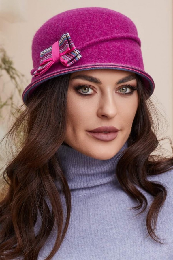 Caciula de dama stil palarie Edda este prevazuta cu marginea imbracata cu o panglica multicolora care ii confera un aer modern si energic. Designul acestui model este rafinat si elegant, cu o forma clasica care aminteste de stilul palariilor. Are o calota rotunjita si o cusatura decorativa ce incercuieste calota. Este un model versatil si confortabil, care poate fi purtat atat cu tinutele casual de zi cu zi, cat si cu cele sofisticate si elegante. Este accesorizata cu o fundita stilizata, amplasata in partea laterala. Aceasta adauga o nota de feminitate si rafinament modelului, dar si un aspect retro si vintage. Fundita este realizata manual, cu mare atentie la detalii, iar cusaturile si finisajele sunt de cea mai buna calitate.
