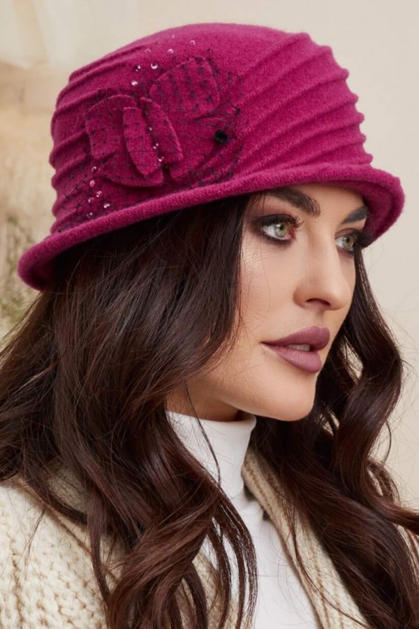 In ceea ce priveste designul, caciula de dama stil palarie Elora se remarca prin croiul sau, care nu numai ca pune in valoare trasaturile faciale ale purtatoarei, dar ii ofera si un aer sofisticat si retro. Modelul este atent finisat, cu cusaturi precise si linii curate, asigurand un aspect estetic impecabil si o durabilitate deosebita. Decorul cu strasuri, voaleta si aplicatii florale aflate pe partea laterala adauga un plus de eleganta si farmec acestei piese vestimentare, facand-o sa iasa in evidenta si sa atraga atentia asupra ei. Caciula Elora este o piesa versatila, ce se poate purta cu usurinta in diverse contexte si situatii. Este potrivita atat pentru tinutele de zi cu zi, cat si pentru evenimente speciale sau ocazii mai formale.