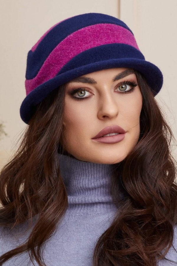 Datorita designului clasic, caciula de dama stil palarie Glory poate fi integrata cu usurinta in orice tinuta, de la cele de zi cu zi pana la cele mai elegante si rafinate. Tonurile ciclamen si bleumarin se completeaza armonios, creand un efect deosebit. Nu are accesorizari sau detalii in plus, pentru ca frumusetea sa sa iasa in evidenta prin simplitate si eleganta.