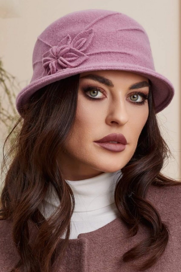 Caciula de dama stil palarie Missa este o piesa deosebita care se remarca prin rafinamentul sau si prin accesorizarea deosebita. Aceasta piesa este un accesoriu de calitate superioara ce completeaza cu succes tinutele clasice si elegante. Borul mic pune in valoare trasaturile faciale, iar cusaturile decorative de pe calota si aplicatia florala din lateral aduc o nota chic si unica. Missa este perfecta pentru femeile care cauta o alternativa la caciulile clasice si doresc sa adauge un plus de eleganta si stil garderobei lor.