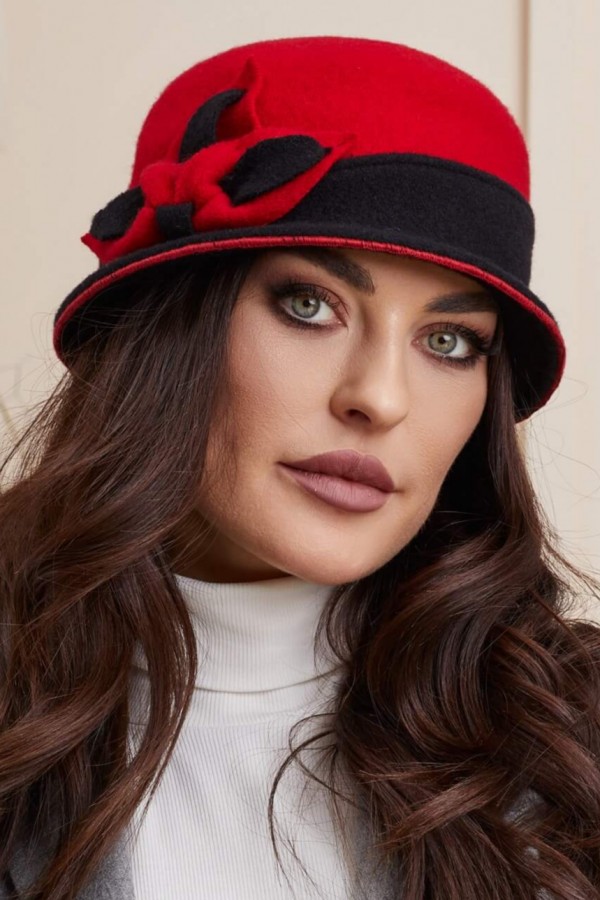 Caciula de dama stil palarie Muna este realizata din doua culori, cu negru in partea de sus si rosu in partea de jos, pentru a oferi un contrast interesant si pentru a atrage atentia asupra ta. De asemenea, borul mic pune in valoare trasaturile faciale si accentueaza frumusetea ta naturala. Cu o versatilitate ridicata poate fi purtata in diverse moduri, oferindu-ti o varietate de optiuni pentru a-ti personaliza tinuta.