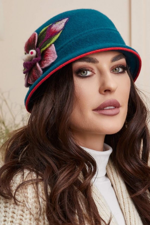 Caciula de dama stil palarie Sisi este o alegere perfecta pentru femeile care doresc sa isi puna in valoare frumusetea naturala si sa se bucure de o piesa vestimentara practica. Marginea borului cusuta in culoarea rosie atrage priviri asupra fetei. Elementele decorative aplicate manual, precum florile in nuante pastelate, completeaza designul si ii confera un aspect unic. Culorile pot fi usor diferite fata de poza, ceea ce confera un caracter special si o nota de autenticitate.