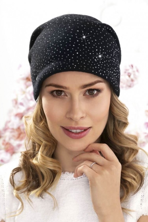Caciula de dama WL10365 are un design modern, dominat de croiala tinereasca data de pliul amplu prins spre ceafa. In partea frontala se remarca aplicatia bogata de strasuri care ofera piesei un aer pretios. Croiul permite fixare perfecta, acoperind bine fruntea si urechile, si incadrarea frumoasa a trasaturilor faciale. Datorita elementelor moderne evidente, caciula de dama WL10365 completeaza cu usurinta tinutele casual urbane, pe cele indraznete dar si pe cele cu accente clasice elegante. Este purtata cu aceeasi placere de domnisoarele active cat si de doamnele care doresc sa se bucure de un accesoriu vestimentar tineresc.
