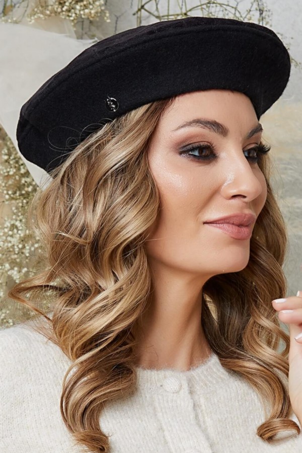 Bine ai venit in universul unde eleganta se imbina cu functionalitatea in mod armonios. Iti prezentam bereta de dama Daiva, o piesa vestimentara care straluceste prin detaliile sale rafinate si prin calitatea superioara. Desfasurandu-se intr-o nuanta profunda de negru, bereta Daiva se mandreste cu o croiala clasica, care completeaza cu gratie orice tip de tinuta. Negrul, recunoscut pentru versatilitatea sa in lumea modei, face ca aceasta piesa sa fie usor de asortat. Totusi, particularitatea acesteia vine din finisajul sau distinctiv. Partea superioara, acoperita cu maiestrie in catifea cu aspect matlasat, ofera un aer sofisticat si o textura care invita la apreciere.