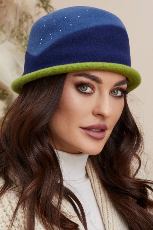 Caciula de dama stil palarie Julia 1 este un must-have pentru orice femeie care isi doreste sa adauge un strop de eleganta garderobei sale de toamna-iarna. Este un model versatil, potrivit pentru orice tip de tinuta, de la cea casual pana la cea eleganta. Culorile albastru, bleumarin si verde ale acestei caciuli se imbina perfect, creand un aspect sofisticat. Strasurile subtile sunt un detaliu care adauga un strop de eleganta si stralucire, fara a fi prea ostentative.