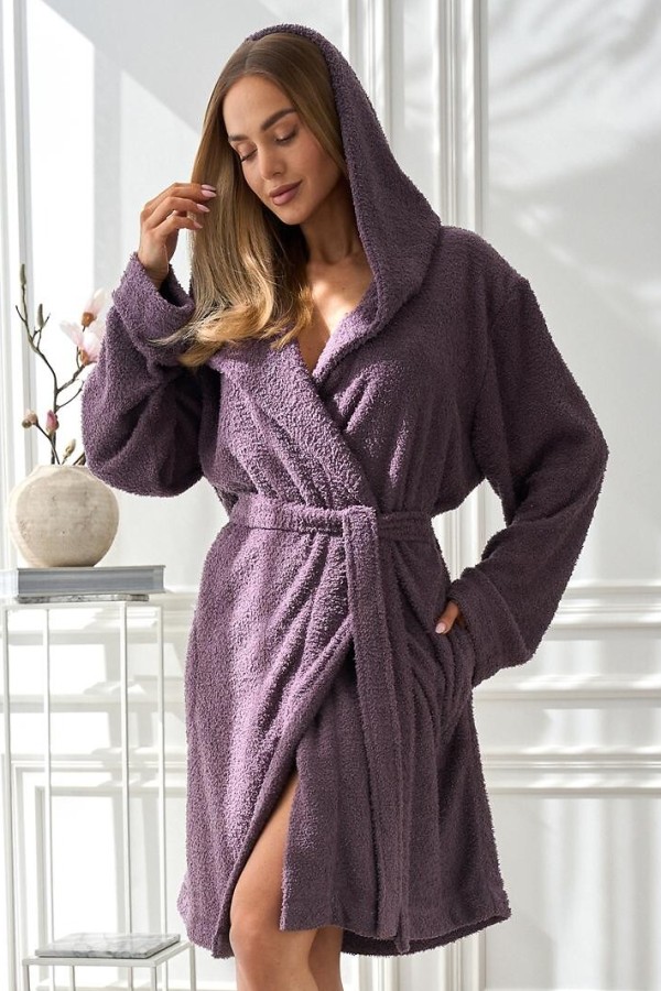 Halat scurt de baie/casa realizat din material moale, pufos si placut la atingere. Halatul are aspect modern, maneca lunga, gluga, este prevazut cu buzunare laterale si se leaga in talie cu un cordon, ajustandu-se perfect pe talie. E de ajuns sa-l porti o singura data pentru a deveni halatul tau preferat.