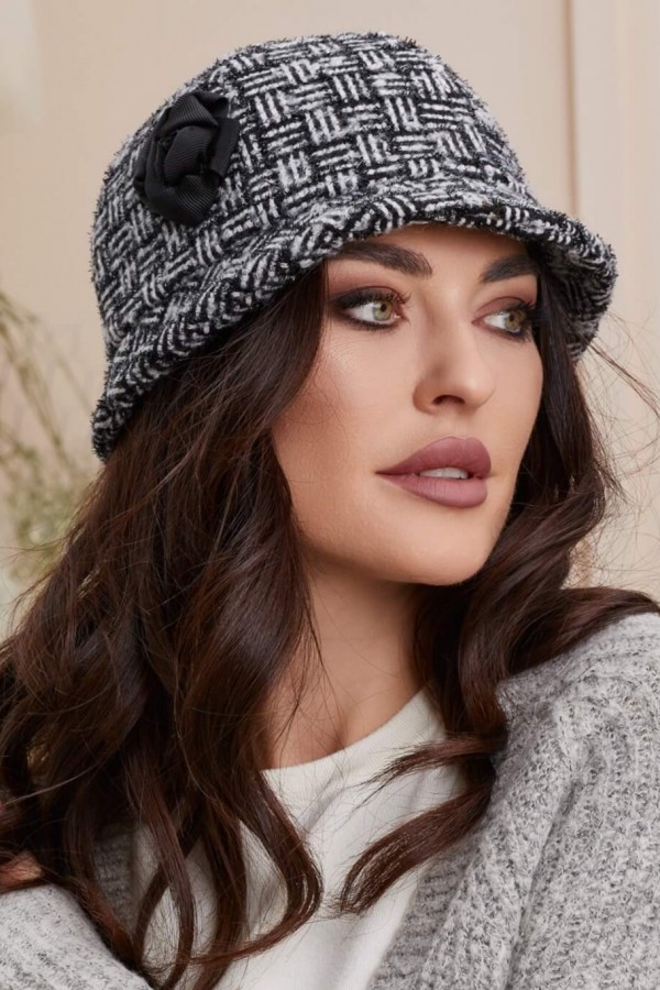 In lateral, palaria de dama Berta este decorata cu o aplicatie florala, care completeaza frumos acest model, oferindu-i o nota rafinata. De-a lungul timpului, palaria stil bucket s-a dovedit a fi un accesoriu de nelipsit din garderoba oricarei doamne. Aceasta este ideala pentru a completa tinutele cu un stil cocheta, discret si elegant. Avand un design clasic, palaria poate fi purtata cu usurinta in orice context, indiferent daca este vorba despre o iesire in parc sau despre o cina romantica.