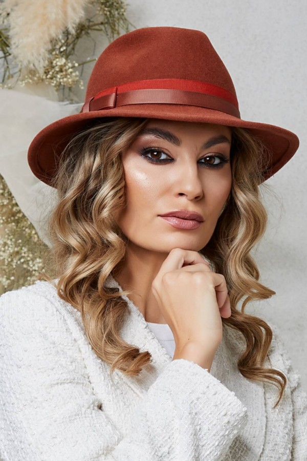Palarie de dama Andreea – un simbol al rafinamentului si al traditiei reinventate. Influentata de clasicul stil fedora, este imbogatita cu o nuanta maronie profunda, ce evoca senzatii de stil pur. Se stie ca maronul este una dintre cele mai versatile culori in lumea modei, aducand aminte de toamnele aurii si de cafeaua proaspata dimineata. Cu o astfel de nuanta, devine o alegere ideala pentru multe ocazii, oferind o atmosfera linistita si calmata.