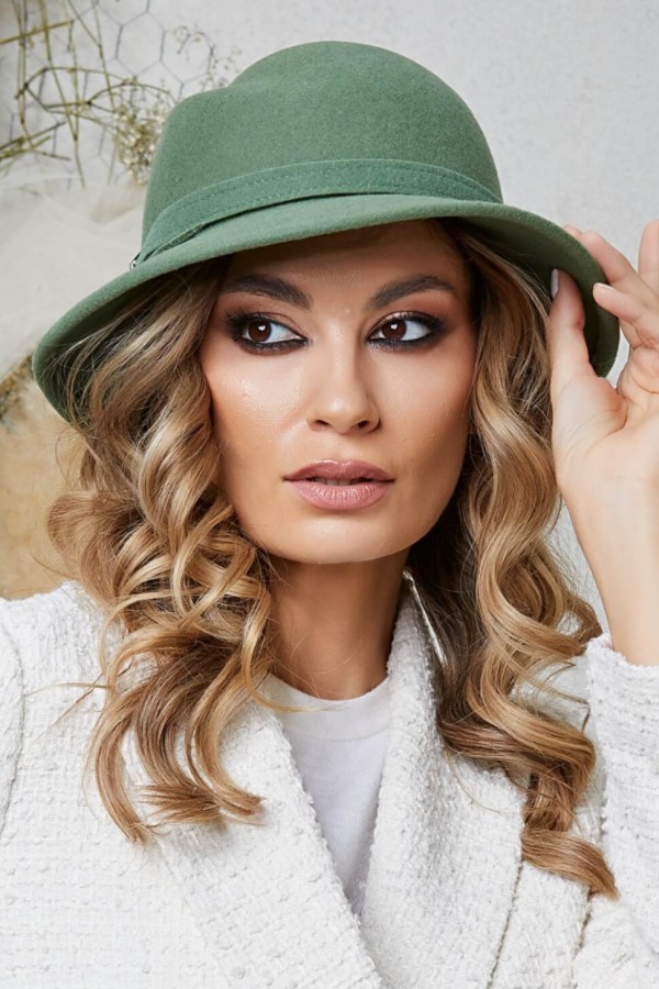 Palarie de dama Olga 1 – nuanta de verde prafuit este alegerea perfecta pentru doamnele care isi doresc sa se diferentieze, fara a epata. Este o culoare placuta si versatila, care se potriveste cu multe tinute si se adapteaza la orice ocazie. De asemenea, poate fi purtata de doamnele toate varstele, atat de cele cu tenul „cald” cat si de cele cu tenul „rece”.