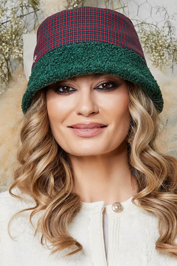 Palarie de dama stil bucket Veronica 2 – cu un design contemporan, impresioneaza printr-o combinatie cromatica deosebita: verde si rosu. Baza acestei palarii este realizata intr-o nuanta de verde proaspat, care aminteste de tonurile naturii, in timp ce calota prezinta un imprimeu Houndstooth in nunate vibrante de verde si rosu, adaugand un strop de personalitate si modernitate piesei. In plus, elementul definitoriu, borul din tesatura boucle de culoare verde, completeaza designul si ofera o estetica aparte. Fiecare detaliu a fost gandit astfel incat sa aduca valoare si functionalitate produsului.