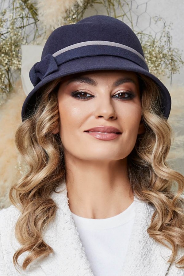Palarie de dama Teodora 2 – culoarea grafit, sobra si totusi atat de expresiva, o transforma intr-o piesa versatila, gata sa completeze atat o tinuta casual, cat si una mai formala. Detaliile fac intotdeauna diferenta. Funda stilizata din fetru, situata in partea dreapta, este un element care atrage imediat privirea. Mici decupaje adauga un strat suplimentar de complexitate, demonstrand atentia acordata detaliilor in procesul de creatie. Borul mediu, asimetric si mai lat in partile laterale, nu numai ca aduce un plus de stil, dar este si extrem de practic. Trecerea subtila de la bor la calota, mascata de o panglica din fetru si finalizata cu o banda ripsata, denota maestria